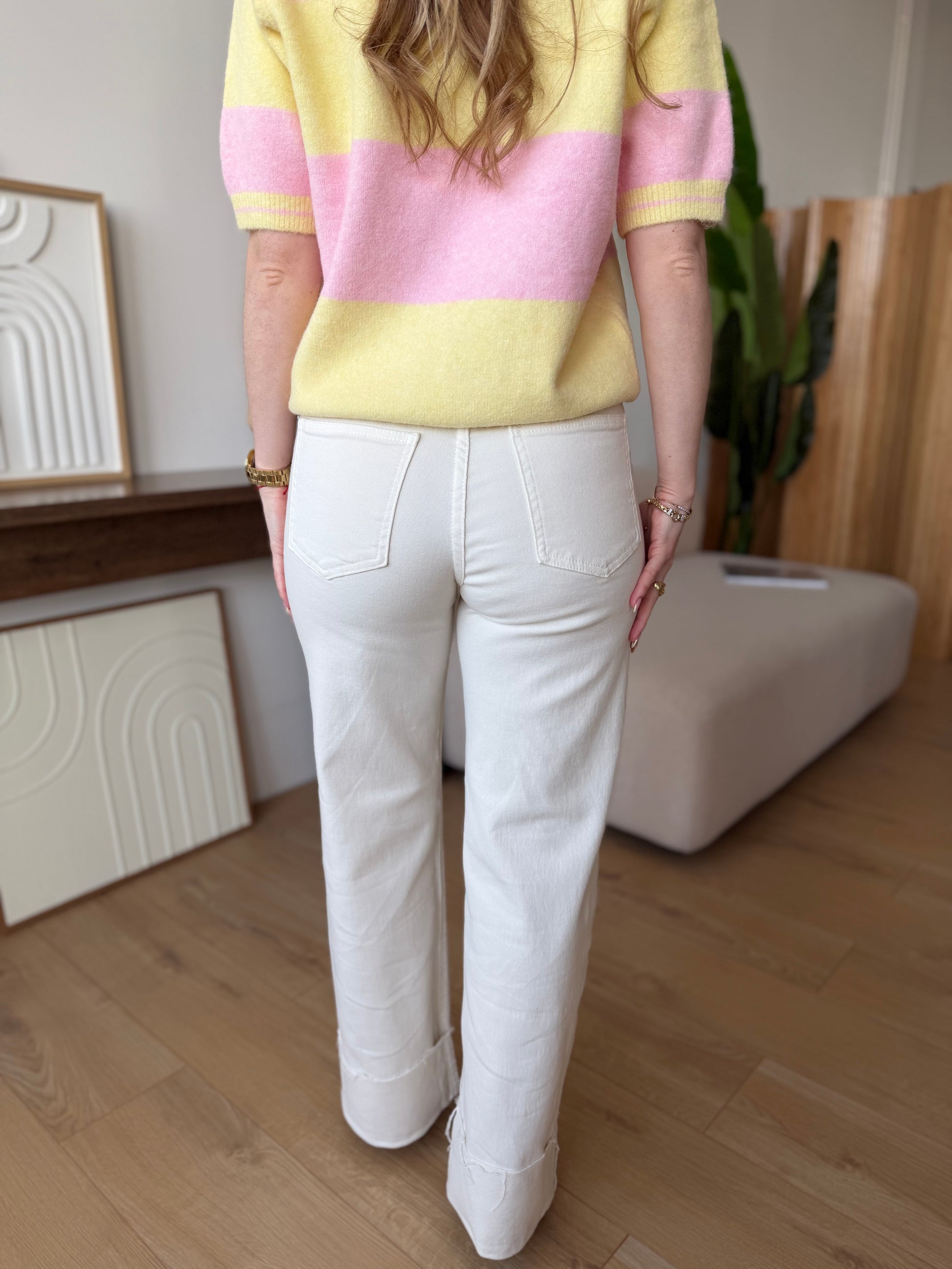 Jeansy damskie Tailor wide leg z wysokim stanem kremowe
