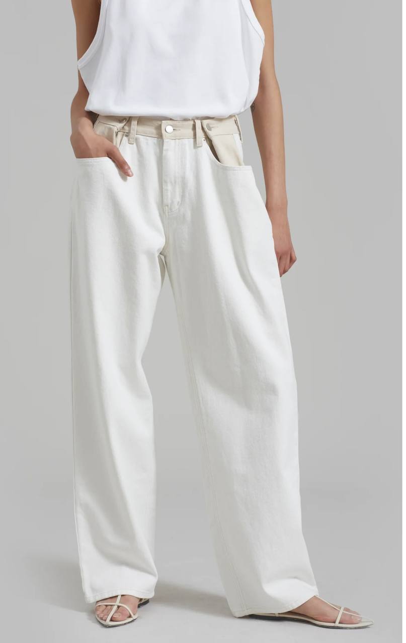 Jeansy o prostym, luźnym kroju typu wide-leg to wyjątkowy model łączący wygodę i styl, a jednocześnie perfekcyjnie podkreślający sylwetkę. Wykonane z miękkiego, przyjemnego w dotyku materiału w kolorze śmietankowej bieli z beżowym detalem w pasie. Posiada minimalistyczne kieszenie dla funkcjonalności. Model UNUSUAL wyróżnia się niebanalnym stylem, stawiając jednocześnie na komfort i uniwersalność.