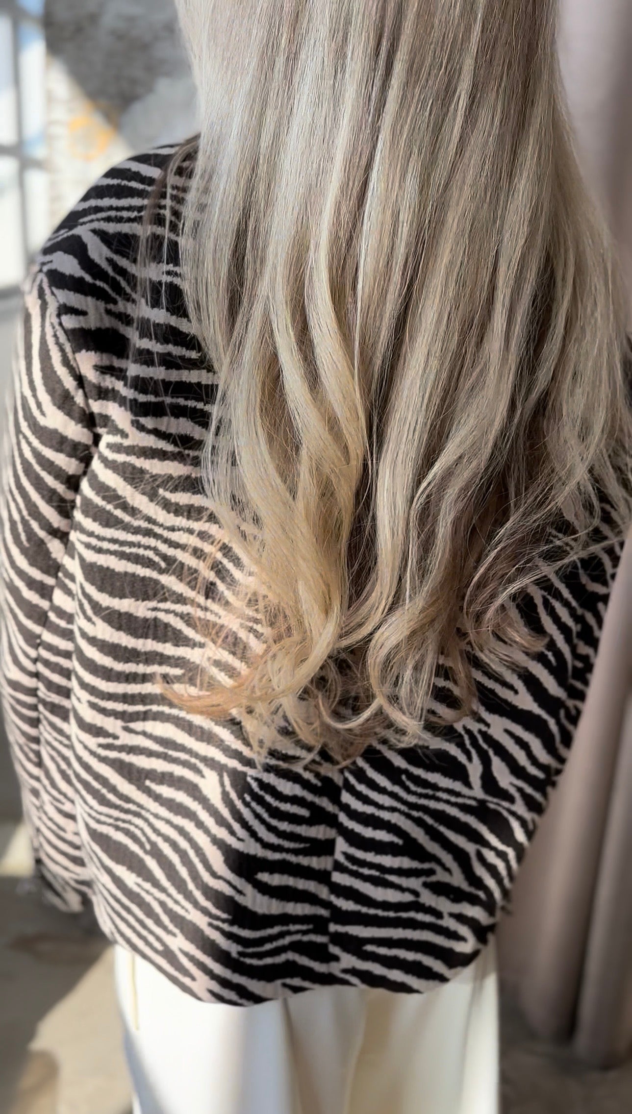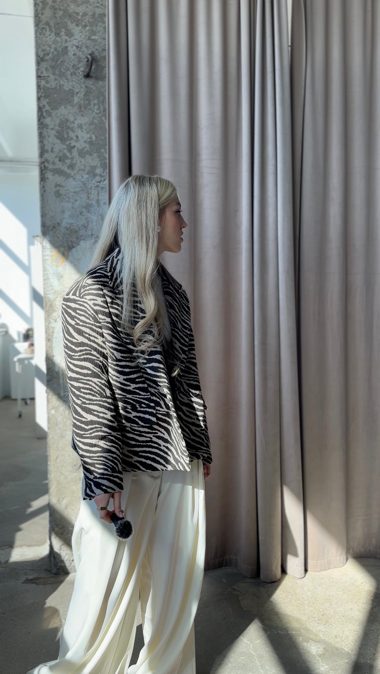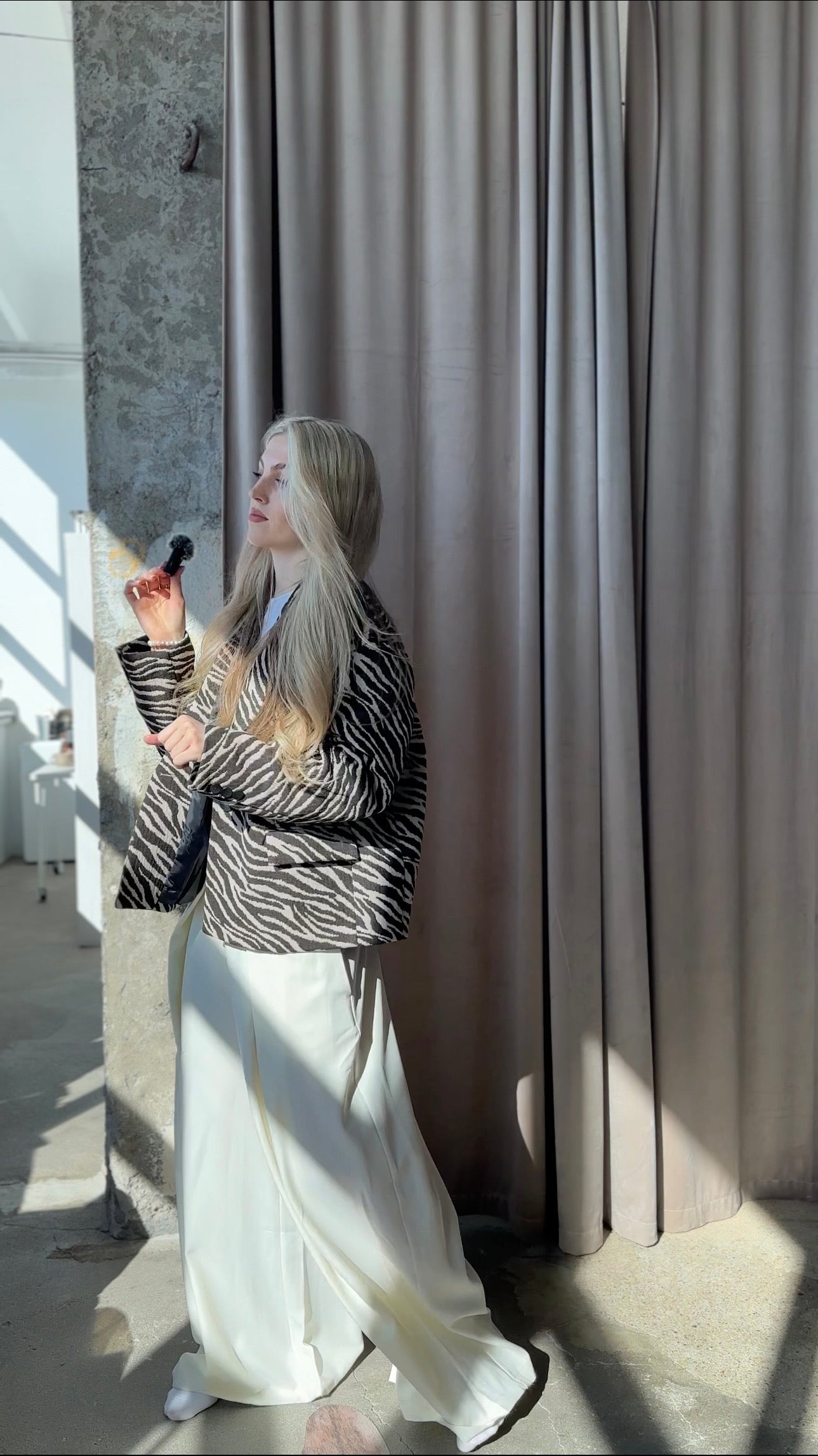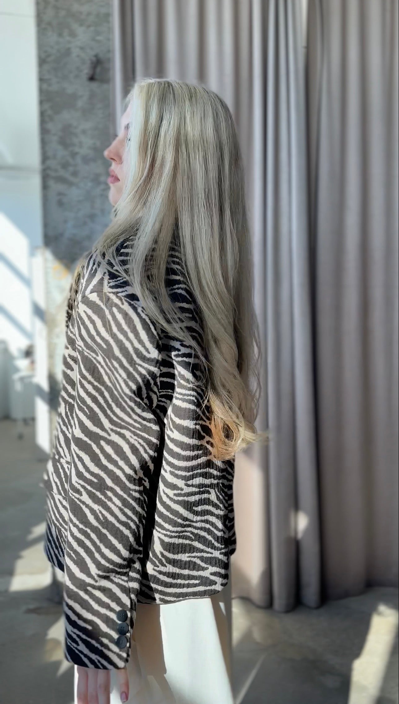 Ten model to połączenie ponadczasowej klasyki z odważnym, zwierzęcym printem, który przyciąga spojrzenia i podkreśla indywidualny styl. Charakterystyczny wzór w zebrę w odcieniach brązu i ecru tworzy efektowny kontrast, doskonale komponujący się zarówno z minimalistycznymi stylizacjami, jak i bardziej ekstrawaganckimi lookami.